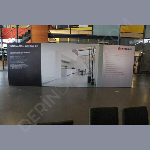 Backdrop stand alüminyum iskelet ve baskılı görsel medyadan oluşan sahne arkası, reklam, fuar, teşhir, fotoğraf çekimleri gibi bir çok etkinliğe hizmet eden display reklam ürünüdür. Dekoratif kullanımlarınız için idealdir