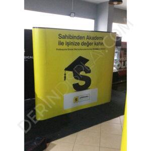 - Ürünün en dikkat çekici özelliği standart ölçü kalıplarının dışında alanınıza göre istenilen genişlik ve yükseklikte stand oluşturulabilir.
