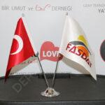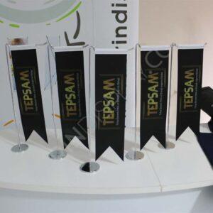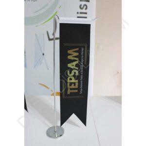 Masa DörtlüBayrağı, iç mekanlar da masaüstünde metal krom direkler ile kullanılır.