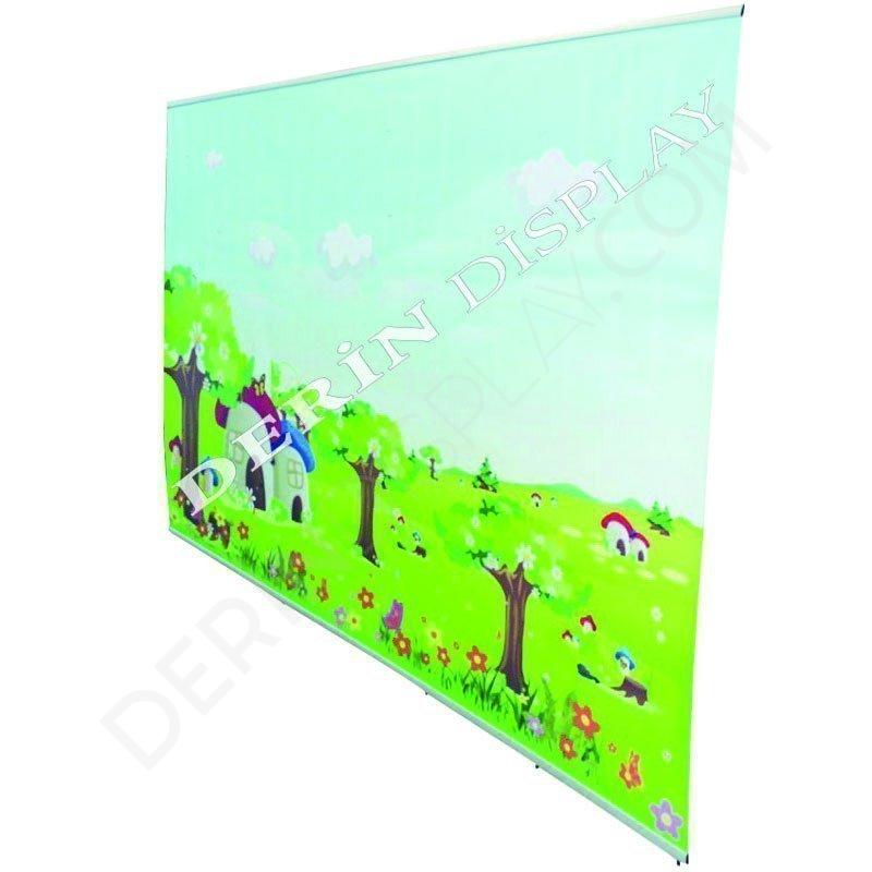 Görseli üstte ve altta bulunan profiller sıkıştırıp, gerginlik sağlar.