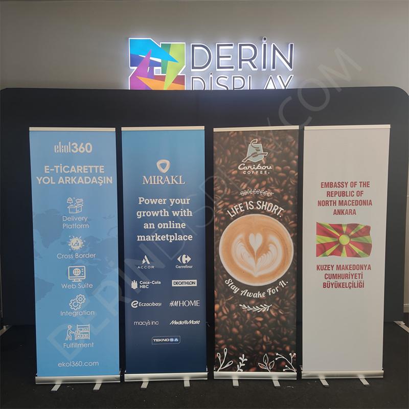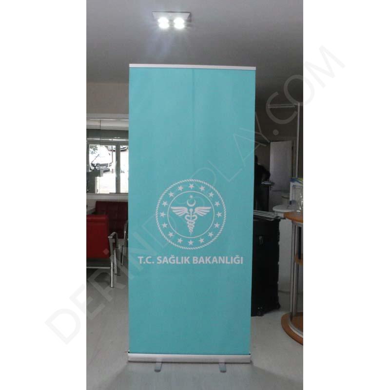 - Diğer rollup bannerlardan farklı olaran ince bez malzemeye baskı yapılmaktadır.