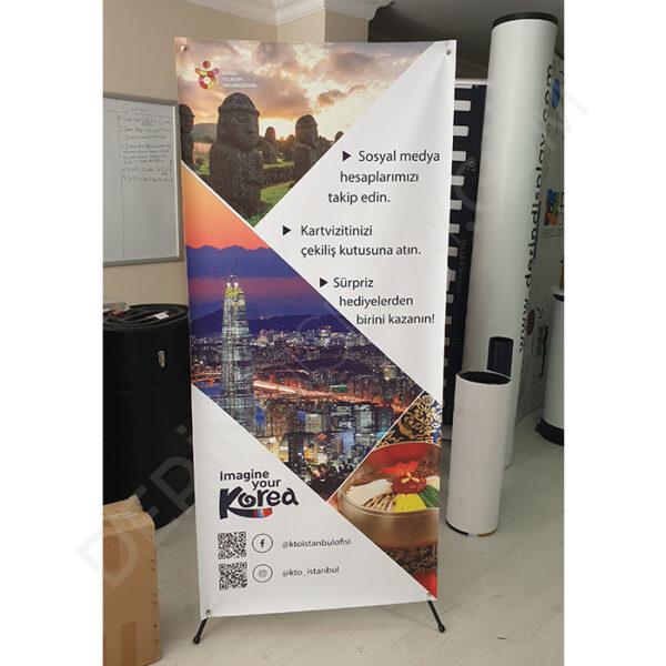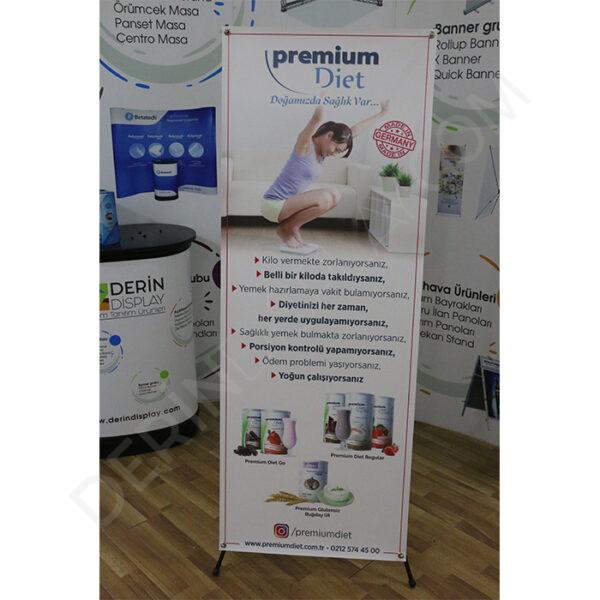 - X Şeklinde gerdirme sistemi sayesinde reklam baskısını dört köşeden tutturarak sunum imkanı sağlar.